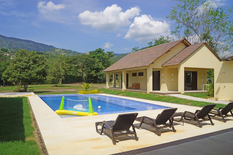 ALQUILER POR DIAS. Linda y cómoda casa de recreo ubicada en Apulo, conjunto puente de piedra consta de amplia sala abierta con comedor en un solo ambiente, techos altos que la hacen muy fresca, amplia cocina independiente con isla de muy buen tamaño y totalmente dotada. 4 habitaciones amplias con baño privado, gran piscina, jacuzzi independiente, zona de BB-Q de leña con un comedor auxiliar muy agradable, 4 garajes cubiertos y linda vista hacia las montañas. Servicio de televisión por cable. El conjunto cuenta con canchas de tenis. Esta casa no se arrienda con el cuarto principal que está ubicado en el segundo piso. VALOR DIA TRABAJADO EMPLEADA:$95.000. CAPACIDAD: 16 PERSONAS