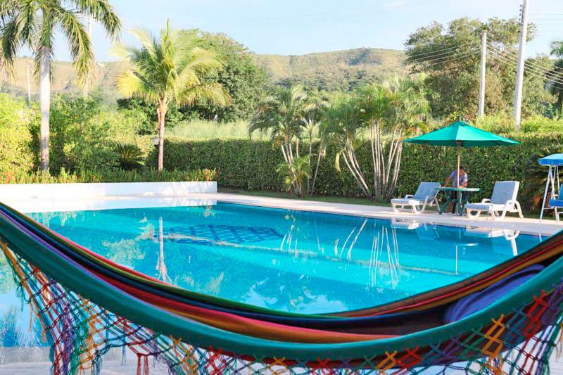 ALQUILER POR DIAS. Finca de recreo en el Condominio el Poblado ubicado a pocos kilómetros de Carmen de Apicala y 20 min de Girardot. En un lote de 1.000 metros y una construcción de 300, esta casa ofrece gracias a sus altos techos sensación de frescura y amplitud. Además, sus zonas sociales abiertas hacia la piscina al igual que la terraza permiten disfrutar la vista a las montañas y a los jardines. Piscina de excelente diseño y tamaño con cerámica echa mano que incorpora la piscina de niños y el jacuzzi por medio de una playa sumergida. Cocina integral con mesón central que se integrada al comedor, casa privada encerrada con limoncillos, palma y árboles nativos. 1. cama semidoble y dos sencillas 2. Dos camas dobles 3. Dos camas dobles 4. Cama semi doble y sencilla