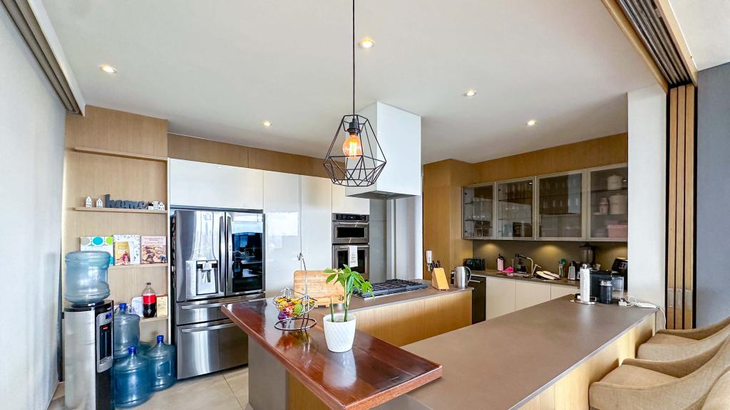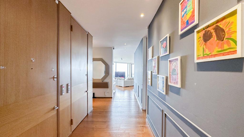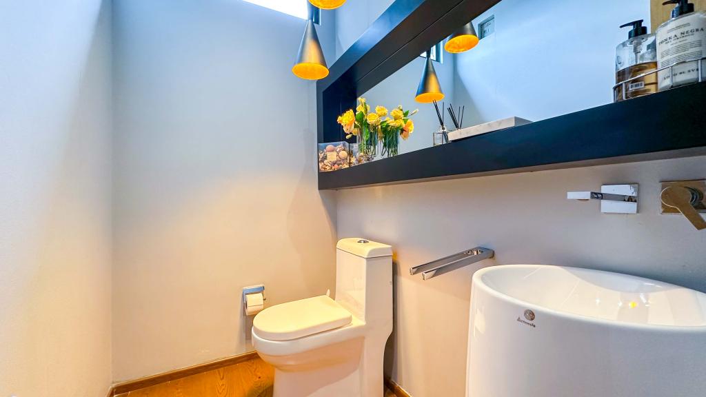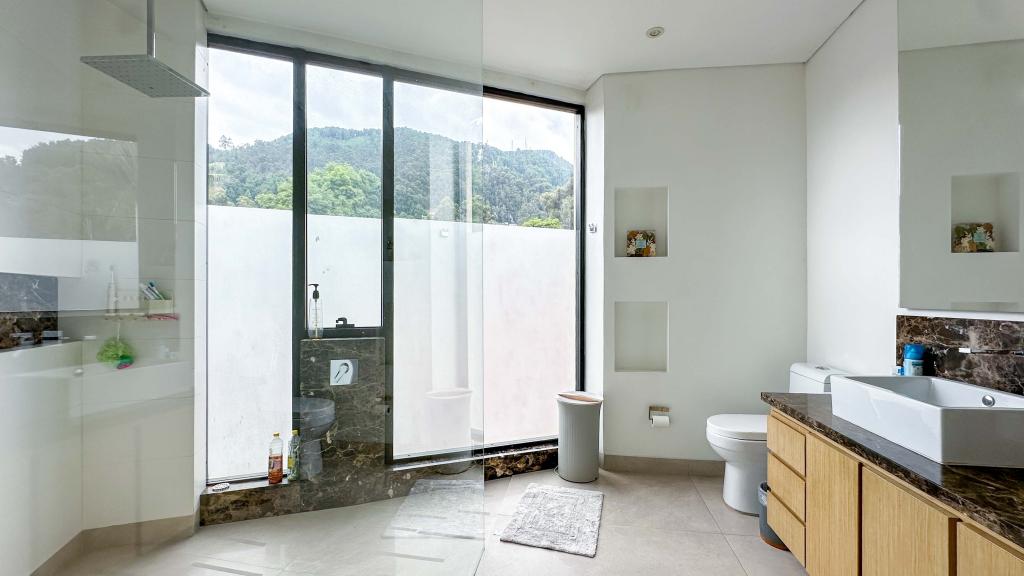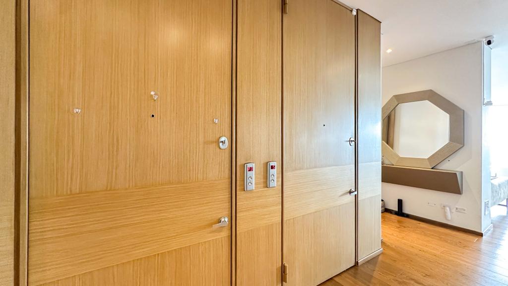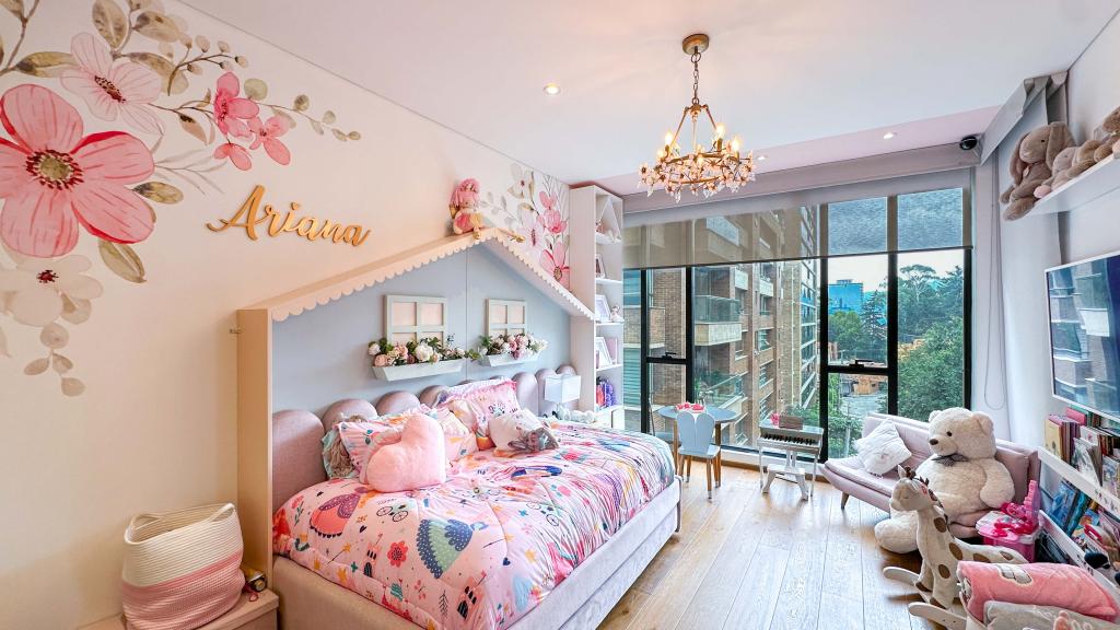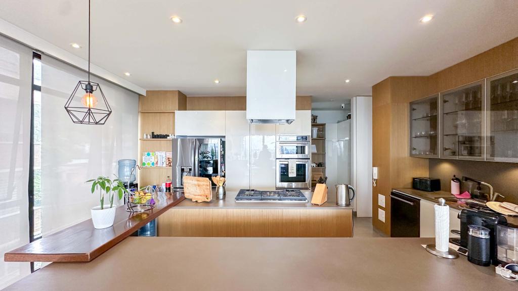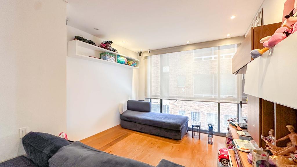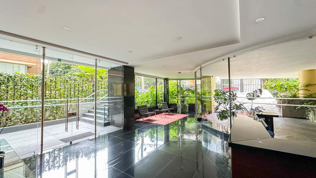 Al ingreso del apartamento, nos recibe una amplia zona social con techos altos y pisos en madera, que le dan calidez y carácter al espacio. La sala con chimenea y el comedor, se integran armónicamente, permitiendo disfrutar de un ambiente abierto, iluminado y acogedor. Balcón con vista panorámica de Bogotá. Cocina abierta que pero puede independizarse según la necesidad. Cuenta con tres habitaciones, cada una con baño. Sala de TV y baño social Complementan este apartamento cuarto, baño de servicio y dos ascensores que llegan al mismo. Piscina, gimnasio, sauna, planta eléctrica de suplencia total y siete parqueaderos.