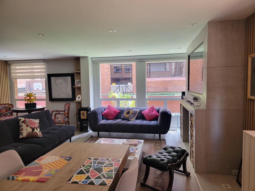 Espectacular apartamento en primer piso con amplia terraza, completamente remodelado en 2022. Cuenta con una generosa zona social y una moderna cocina abierta, totalmente equipada. Además, dispone de una zona de ropas. El espacio que actualmente funciona como estudio con biblioteca podría convertirse en una segunda habitación. La habitación principal incluye walk-in closet y baño privado. También cuenta con un baño social completo, dos parqueaderos en línea y un amplio depósito.