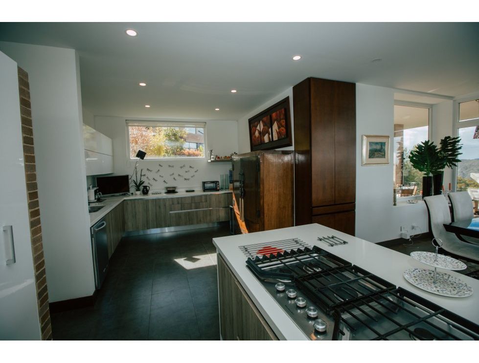 Descubre esta espectacular casa en condominio cerrado, ubicada en la vía a La Calera, a solo 15 minutos de la calle 85 con 7. Con un área total de 464 m² y 100 m² de terrazas, en un lote de 1.398 m², esta vivienda cuenta con acabados de primera calidad. La casa ofrece 4 habitaciones, cada una con baño privado, amplia zona social con cocina abierta, family room y cuarto de juegos. Incluye cuarto y baño de servicio, espacio para 4 parqueaderos y 2 depósitos. Diseñada para ser térmicamente eficiente, tiene dobles muros y ventanería alemana. El condominio cuenta con capilla, salón comunal, gimnasio, 2 canchas de squash, cancha de tenis, cancha de fútbol, 2 piscinas (adultos y niños), zonas húmedas, cafetería, parque infantil y sendero ecológico. ¡Una oportunidad única para vivir en un entorno seguro y exclusivo, donde el lujo y la comodidad se unen!