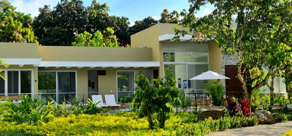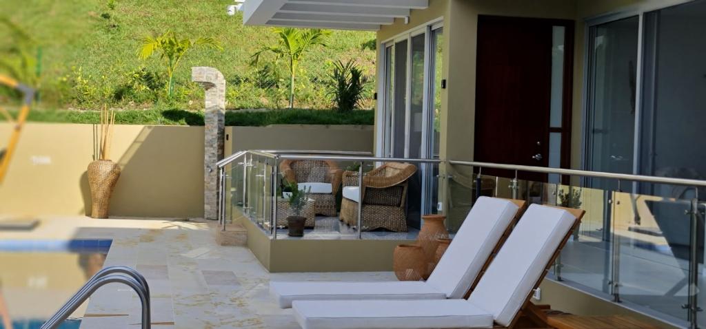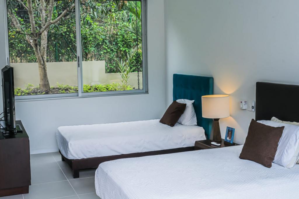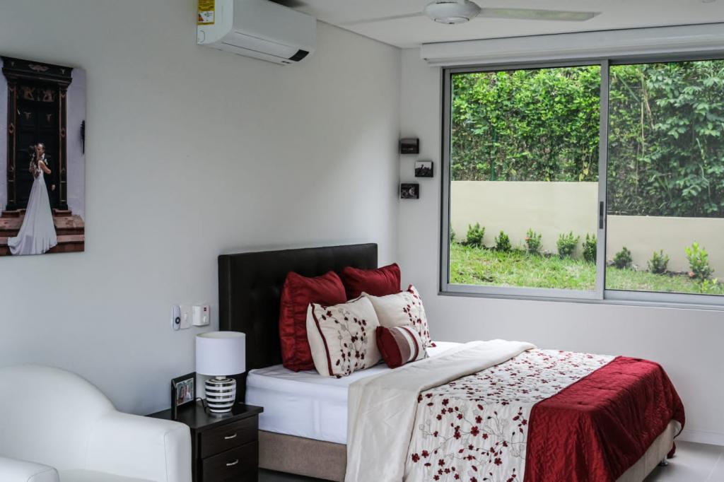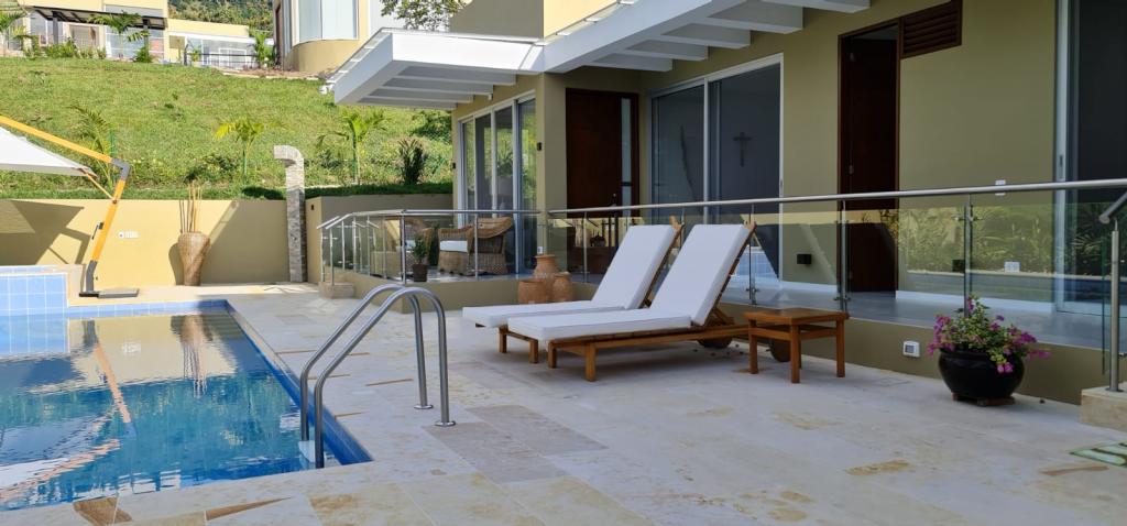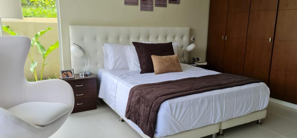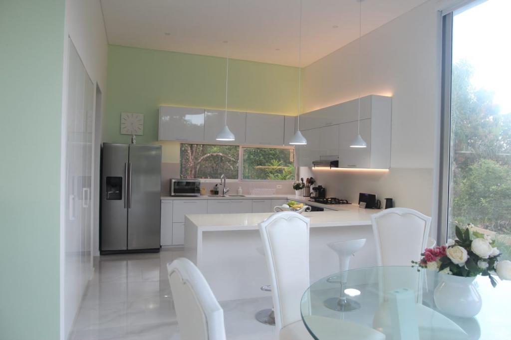 Casa campestre recién construida en el condominio cerrado Natura Forest, Anapoima. Ofrece 3 habitaciones, cada una con baño propio, además de un baño social. Sus espacios incluyen una luminosa sala-comedor, cocina integral, cuarto de ropas y dos bodegas. Disfruta de 3 terrazas, una refrescante piscina y jacuzzi con agua caliente. Además, cuenta con energía solar para los baños, garaje cubierto, sistema de riego, luces indirectas en toda la finca, cortinas eléctricas y elegantes pisos de Decorceramica.