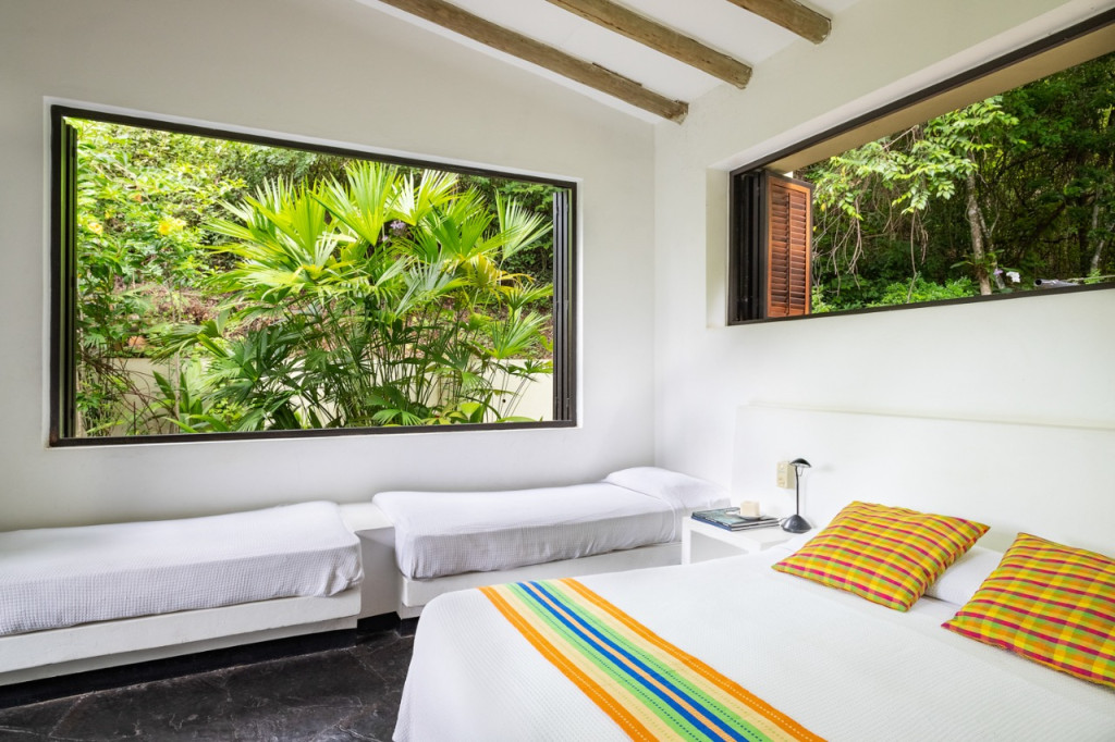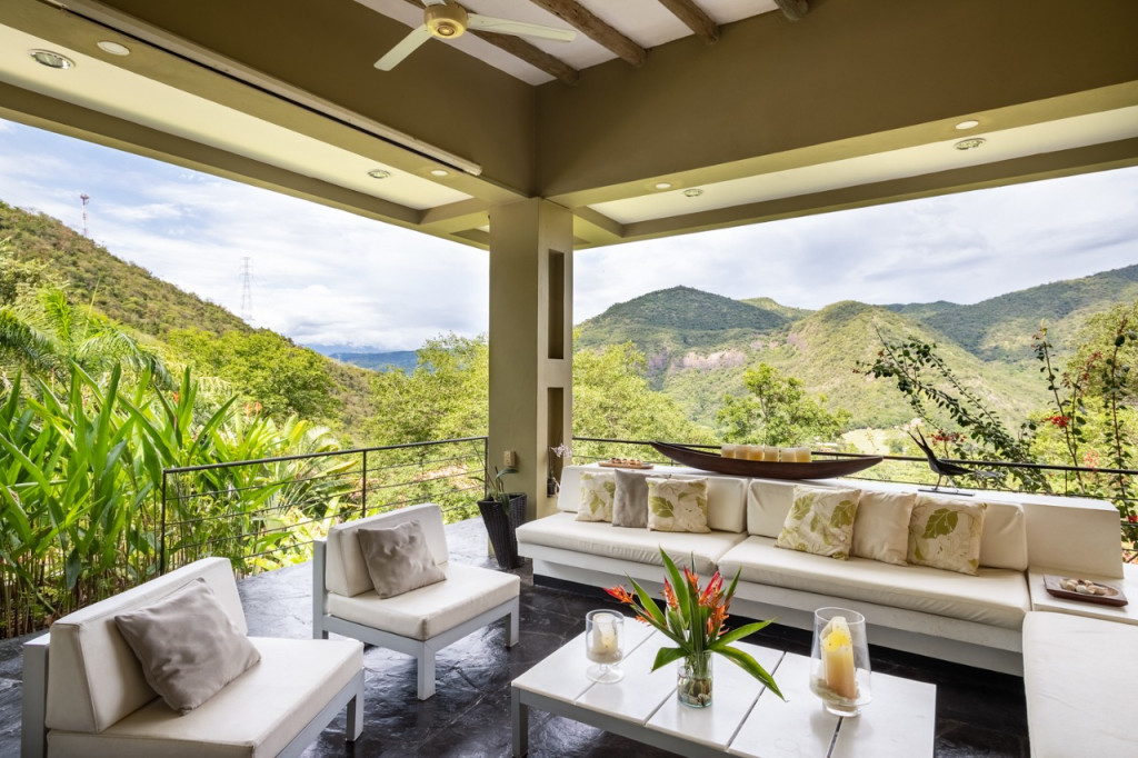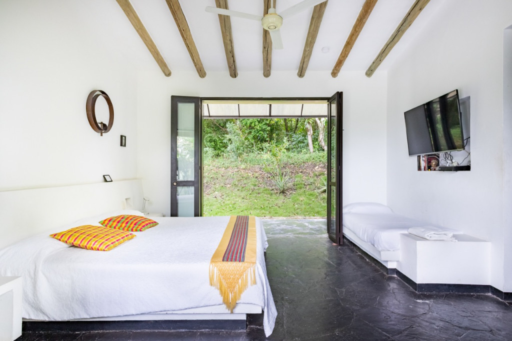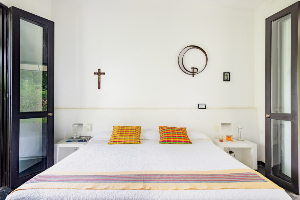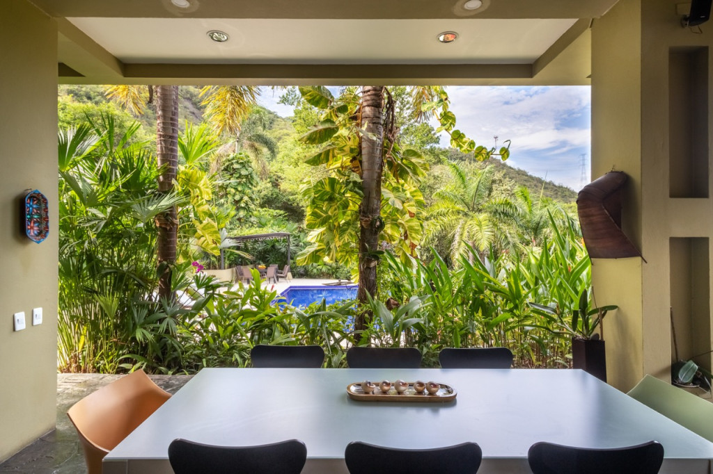 En el exclusivo Condominio Entrepuentes en APULO se encuentra esta hermosa casa campestre rodeada de naturaleza. Al ingreso, dispone de dos parqueaderos independientes y tres adicionales al frente, sumando cinco. Cuenta con piscina privada, pérgola, árboles frutales, orquídeas y cuarto de máquinas. Un corredor exterior conduce a la zona social: sala-comedor con vista espectacular y excelente ventilación, cocina integral equipada, amplia despensa, bar con cava de vinos, zona BBQ y baño auxiliar. La zona de alcobas se conecta por un hall con hamacas. Son cuatro alcobas, todas con baño privado, ventilador y camas en mampostería. Una con aire acondicionado y otra completamente independiente. Las puertas de las habitaciones permiten apertura total para una ventilación natural. Incluye un nacimiento de agua azufrada.