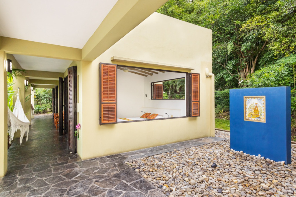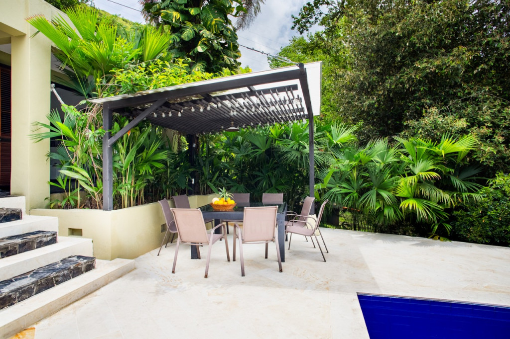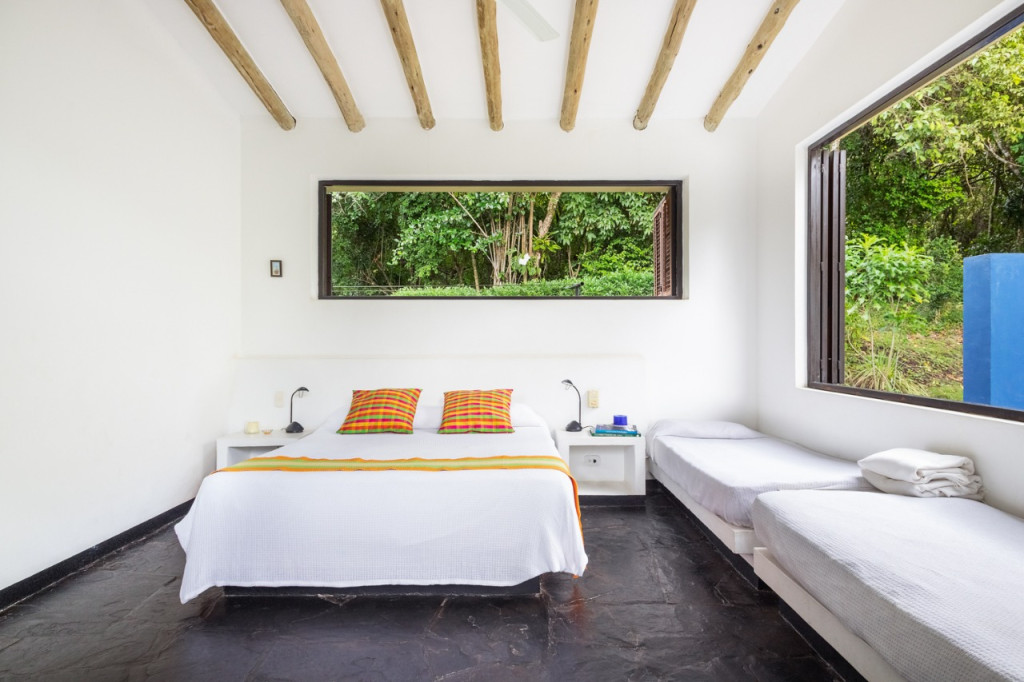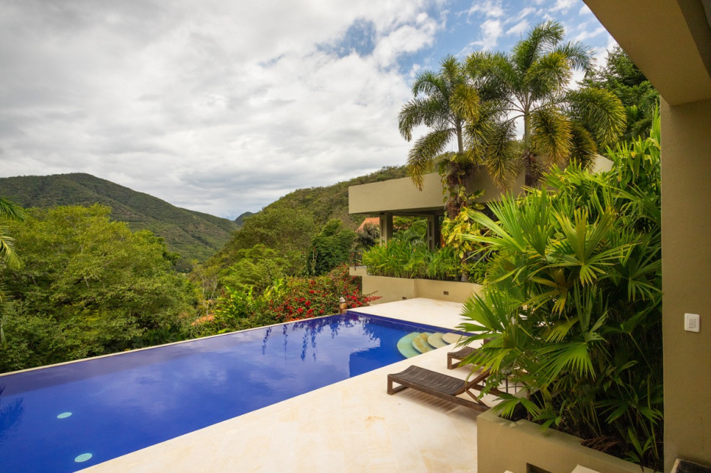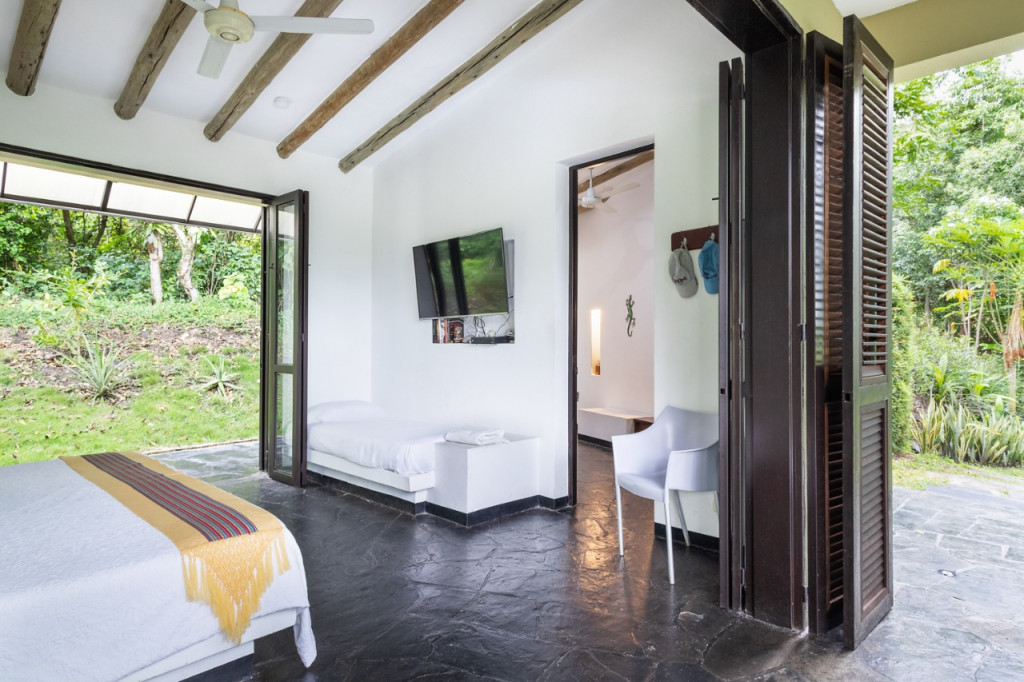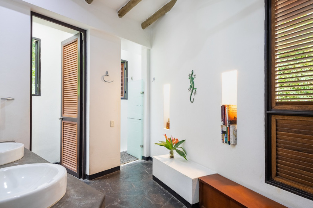 En el exclusivo Condominio Entrepuentes en APULO se encuentra esta hermosa casa campestre rodeada de naturaleza. Al ingreso, dispone de dos parqueaderos independientes y tres adicionales al frente, sumando cinco. Cuenta con piscina privada, pérgola, árboles frutales, orquídeas y cuarto de máquinas. Un corredor exterior conduce a la zona social: sala-comedor con vista espectacular y excelente ventilación, cocina integral equipada, amplia despensa, bar con cava de vinos, zona BBQ y baño auxiliar. La zona de alcobas se conecta por un hall con hamacas. Son cuatro alcobas, todas con baño privado, ventilador y camas en mampostería. Una con aire acondicionado y otra completamente independiente. Las puertas de las habitaciones permiten apertura total para una ventilación natural. Incluye un nacimiento de agua azufrada.