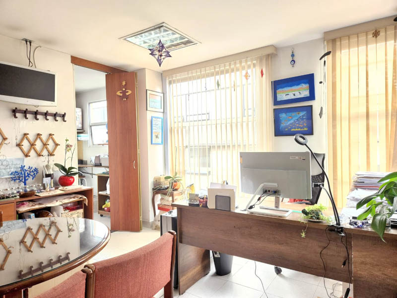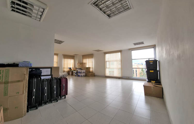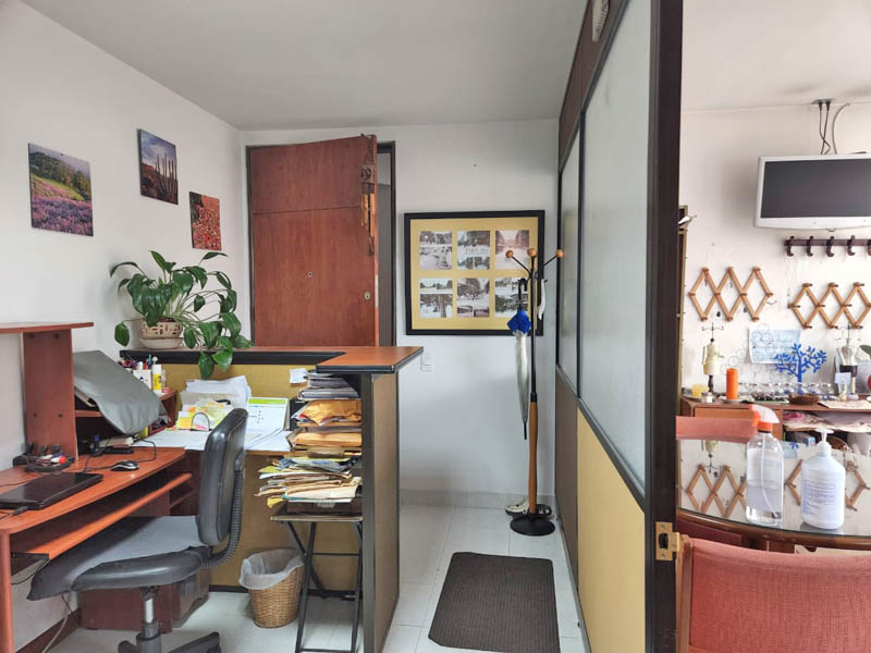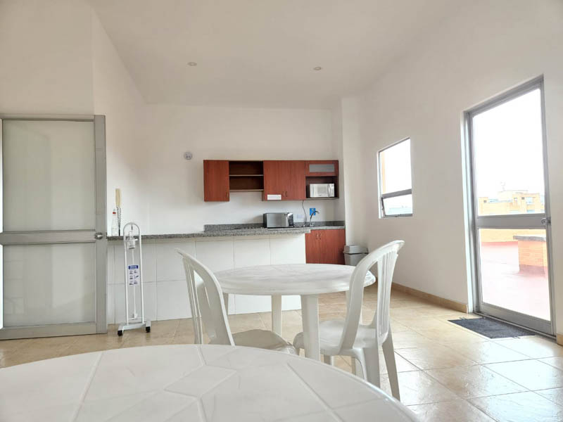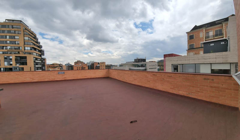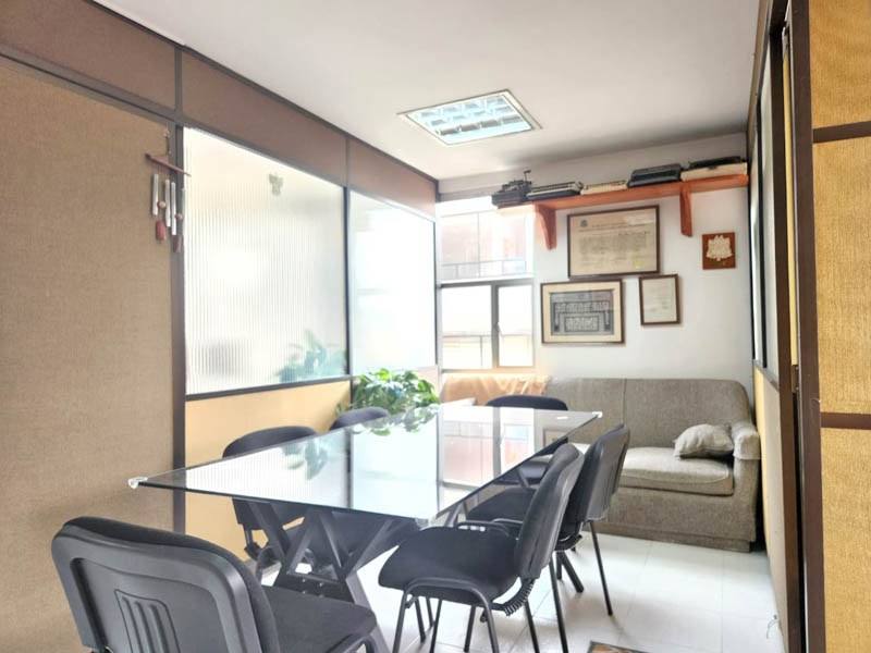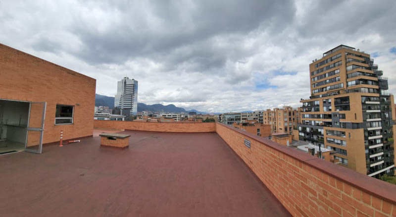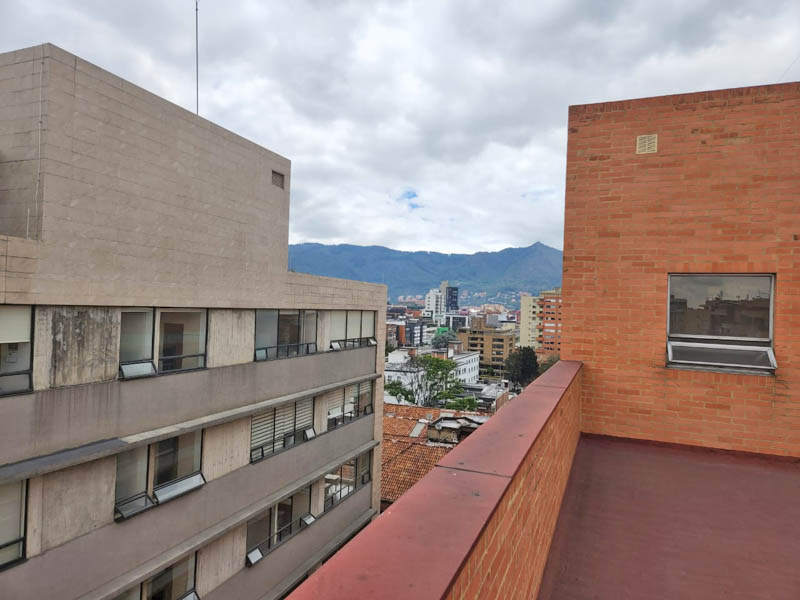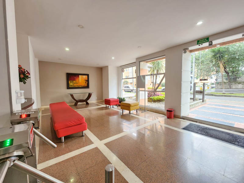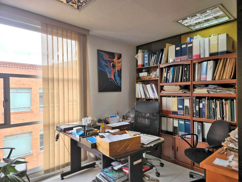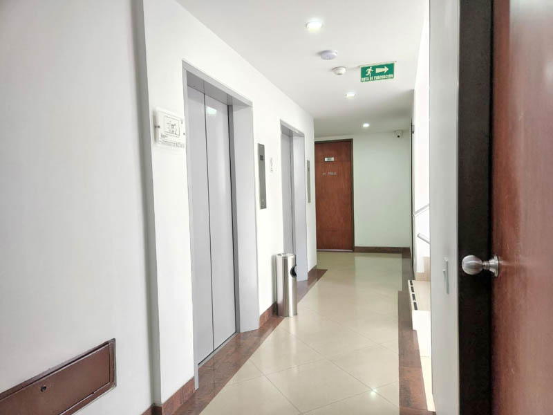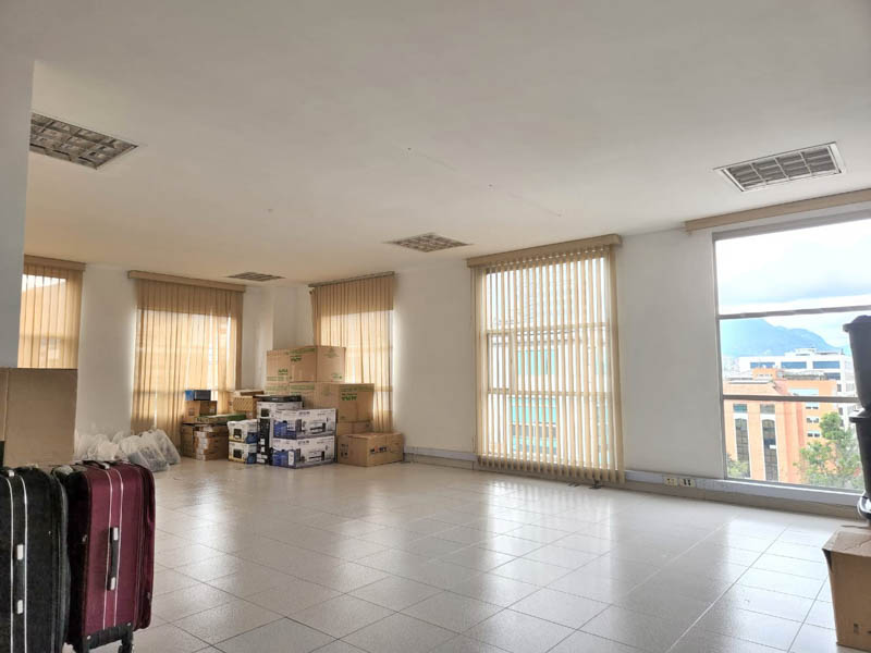 Edificio en calle cerrada, con amplio hall de ingreso, sala de juntas y terraza. Oficina de 103 m2 en noveno piso actualmente dividida en dos espacios, con ingresos distintos. El primero con cocina, tres oficinas independientes, baño privado, espacio pasa mesa de juntas y zona de archivo. El segundo espacio, abierto de aproximadamente 40 m2 con luz natural y piso en cerámica. Tiene dos parqueaderos independientes. El valor de la administración es con descuento, el valor pleno es de 1.543.225